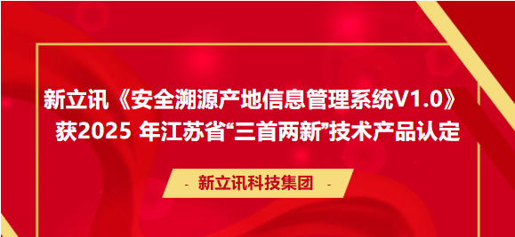 新立訊《安全溯源產(chǎn)地信息管理系統(tǒng)V1.0》獲2025年江蘇省“三首兩新”技術(shù)產(chǎn)品認(rèn)定07-23