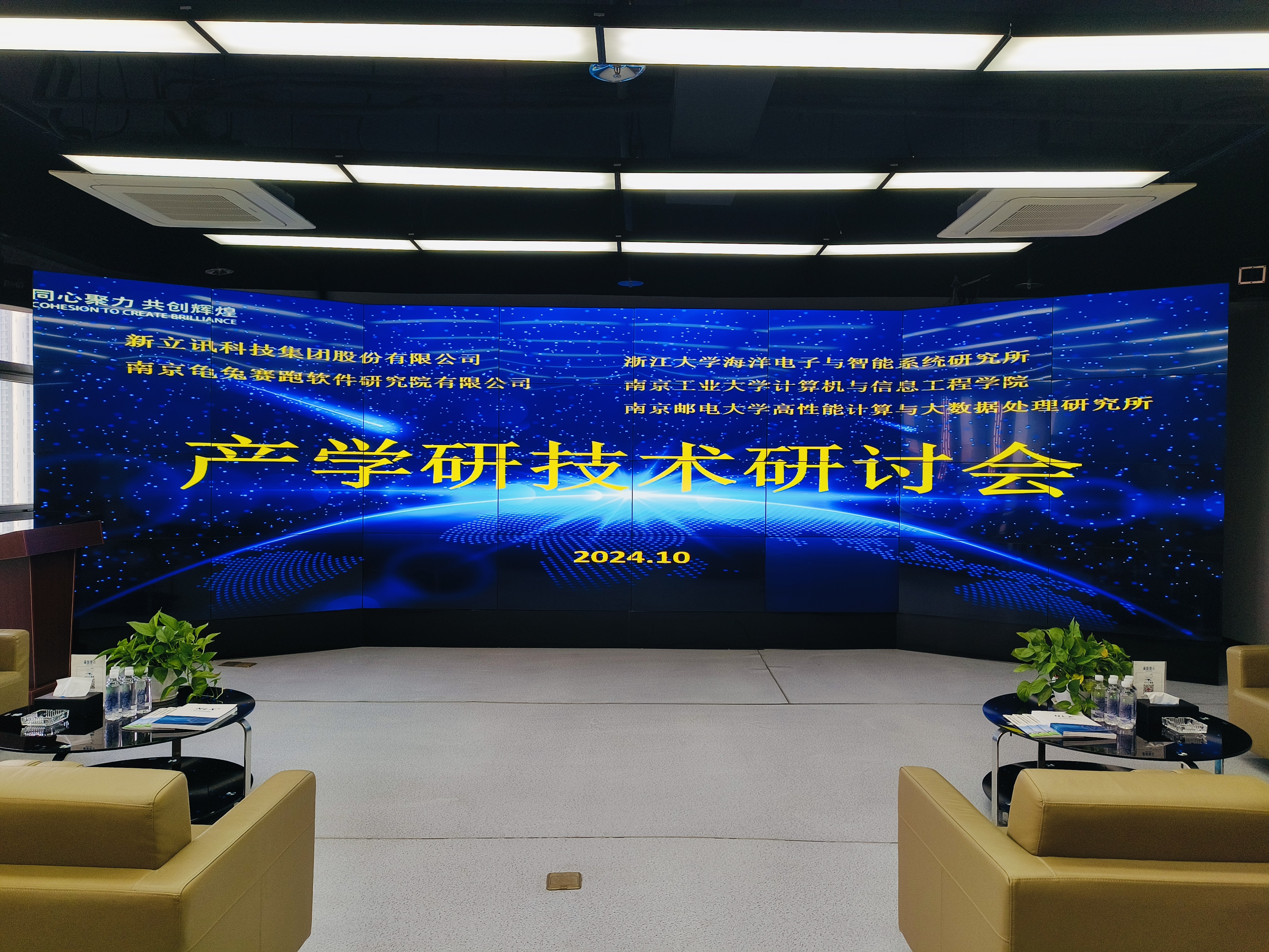 2024年10月10日,新立訊科技集團與浙江大學海洋學院、南京郵電大學高性能研究所、南京工業大學計算機學院在新立訊總部召開2024年度產學研技術研討會,浙江大學博士生導師張帆教授、南京郵電大學博士生導師季一木教授,劉尚東教授、南京工業大學計算機學院院長劉學軍教授,新立訊科技集團董事長毛霖,副總經理李偉,財務總監彭亮及研發中心(龜兔賽跑軟件研究院)主要負責人、技術骨干、業務骨干等代表出席會議。