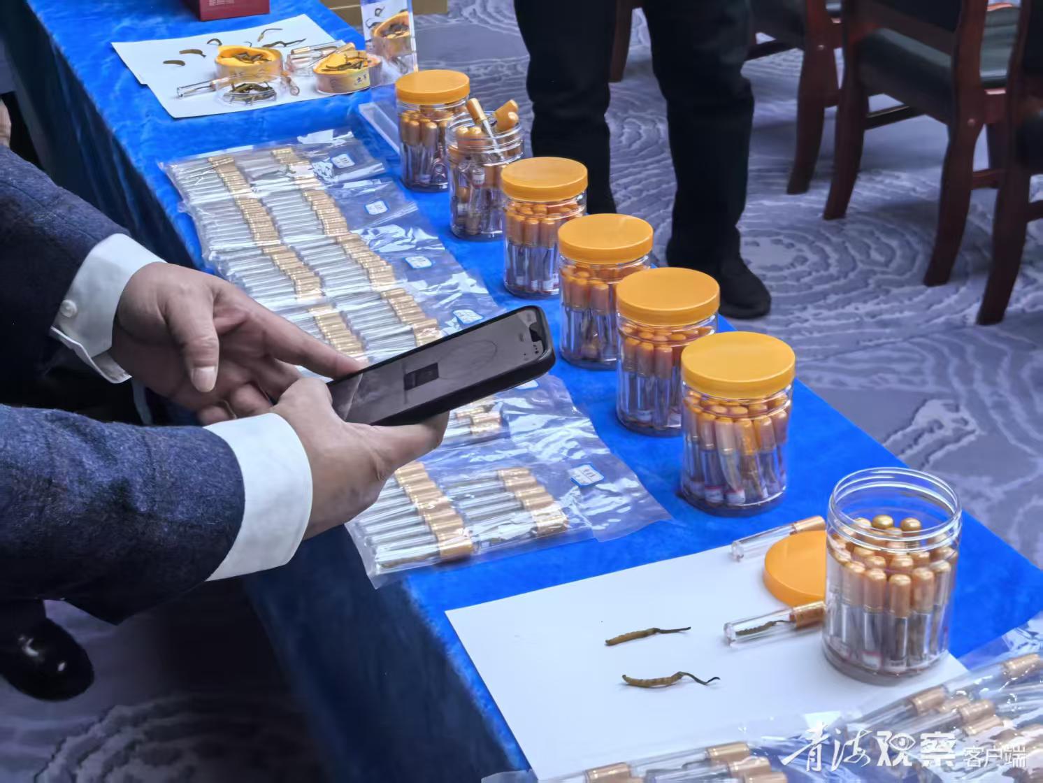 用微信小程序掃碼鑒真蟲草真假。青海日?qǐng)?bào)融媒體記者 羅珺 攝