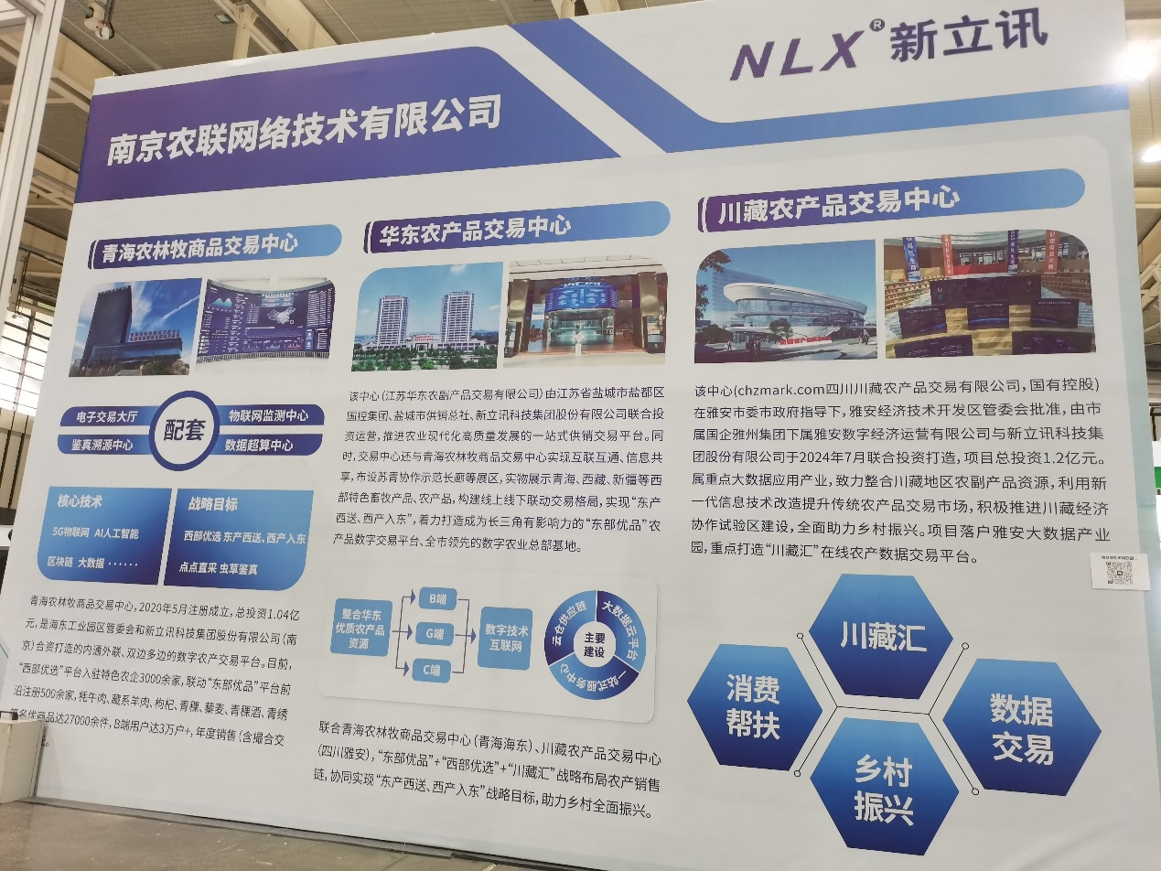 2025年6月20日,在南京市雨花臺區農業農村局的推介和支持下,新立訊科技集團全資附屬南京農聯網絡技術有限公司(簡稱"農聯網絡")聯合青海、華東、川藏三大農產品交易中心,亮相2025中國(南京)數字鄉村博覽會暨第九屆中國(南京)國際智慧農業博覽會,現場展銷來自青海、川藏、華東等地的特色農產品。
