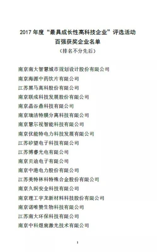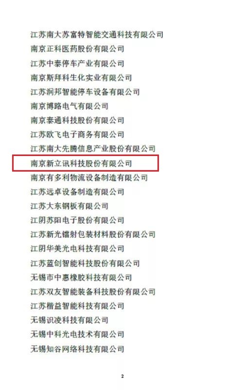 2017年12月1日,公布了2017年度江蘇省最具成長性高科技企業(yè)100家名單,南京新立訊科技股份有限公司等一批優(yōu)秀的科技型企業(yè)榮獲2017年度江蘇省“最具成長性高科技企業(yè)”稱號。