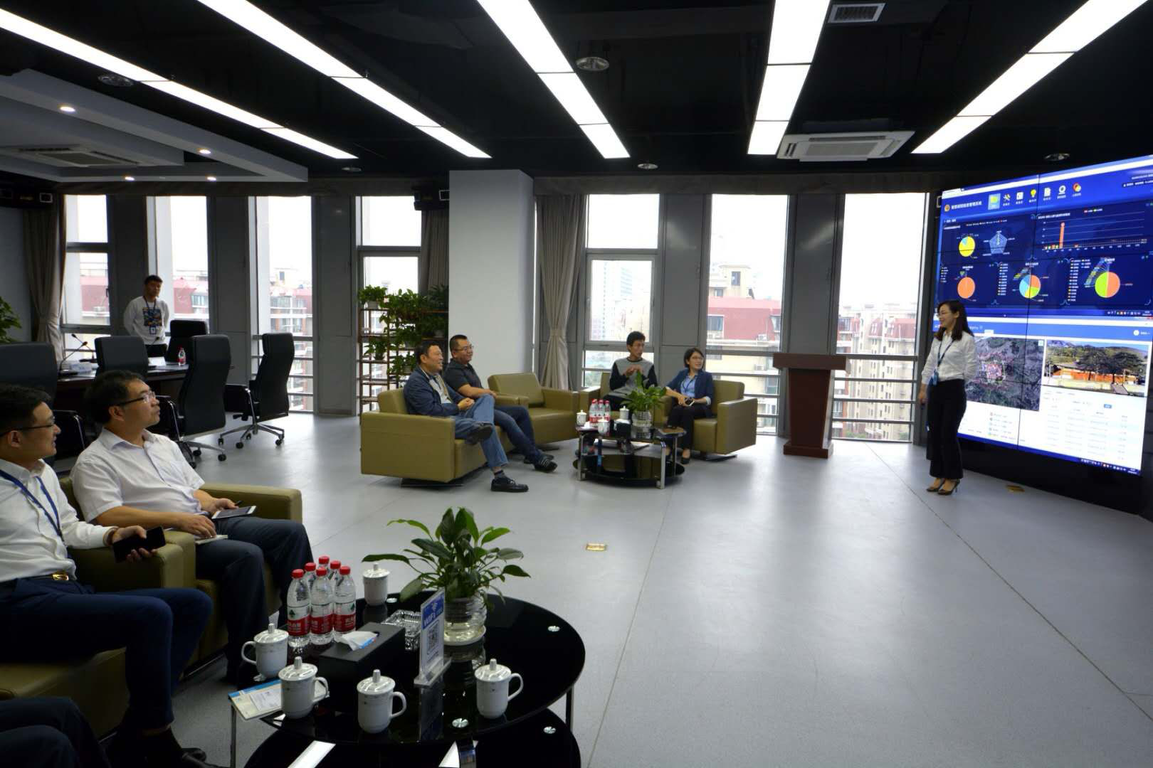 新立訊董事長毛霖?cái)y公司高管陪同艾部長等領(lǐng)導(dǎo)參觀了新立訊總部研發(fā)中心、數(shù)據(jù)中心、運(yùn)營管理中心等職能部門,了解了新立訊在既往發(fā)展歷程中取得的專利成果及企業(yè)榮譽(yù),同時(shí)也了解了公司的核心競爭力與數(shù)據(jù)應(yīng)用挖掘能力。通過現(xiàn)場匯報(bào)講解、PPT演示、宣傳片等多種方式從組織架構(gòu)、業(yè)務(wù)領(lǐng)域、技術(shù)實(shí)力、發(fā)展戰(zhàn)略、黨建活動等多方面對新立訊進(jìn)行介紹,展示了我司大數(shù)據(jù)云平臺、信息系統(tǒng)集成、數(shù)字視覺設(shè)計(jì)以及裝飾與機(jī)電一體化四個(gè)事業(yè)部的項(xiàng)目成果。向領(lǐng)導(dǎo)們詳細(xì)匯報(bào)了新立訊近年來的發(fā)展情況以及新立訊下一步的戰(zhàn)略布局和走向。