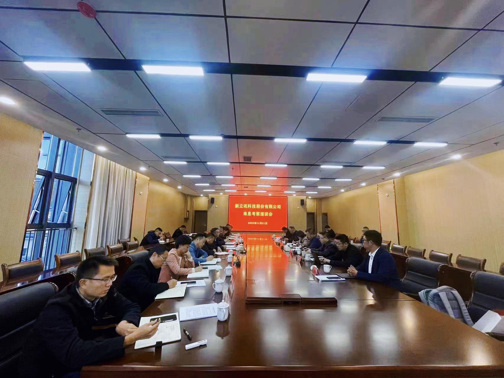 2023年11月22日,新立訊董事長兼總經(jīng)理毛霖、副總經(jīng)理李偉等一行赴息烽縣進行實地考察,息烽縣委副書記、縣長何明,副縣長方超,息烽經(jīng)開區(qū)管委會副主任、縣工業(yè)和信息化局局長趙坤倫,縣政府辦公室主任楊永春,縣委督辦督查局局長、縣商務局負責人陳舟游,縣農(nóng)業(yè)農(nóng)村局局長曹廷友,縣投促局局長曾元媛等領(lǐng)導陪同考察并座談。