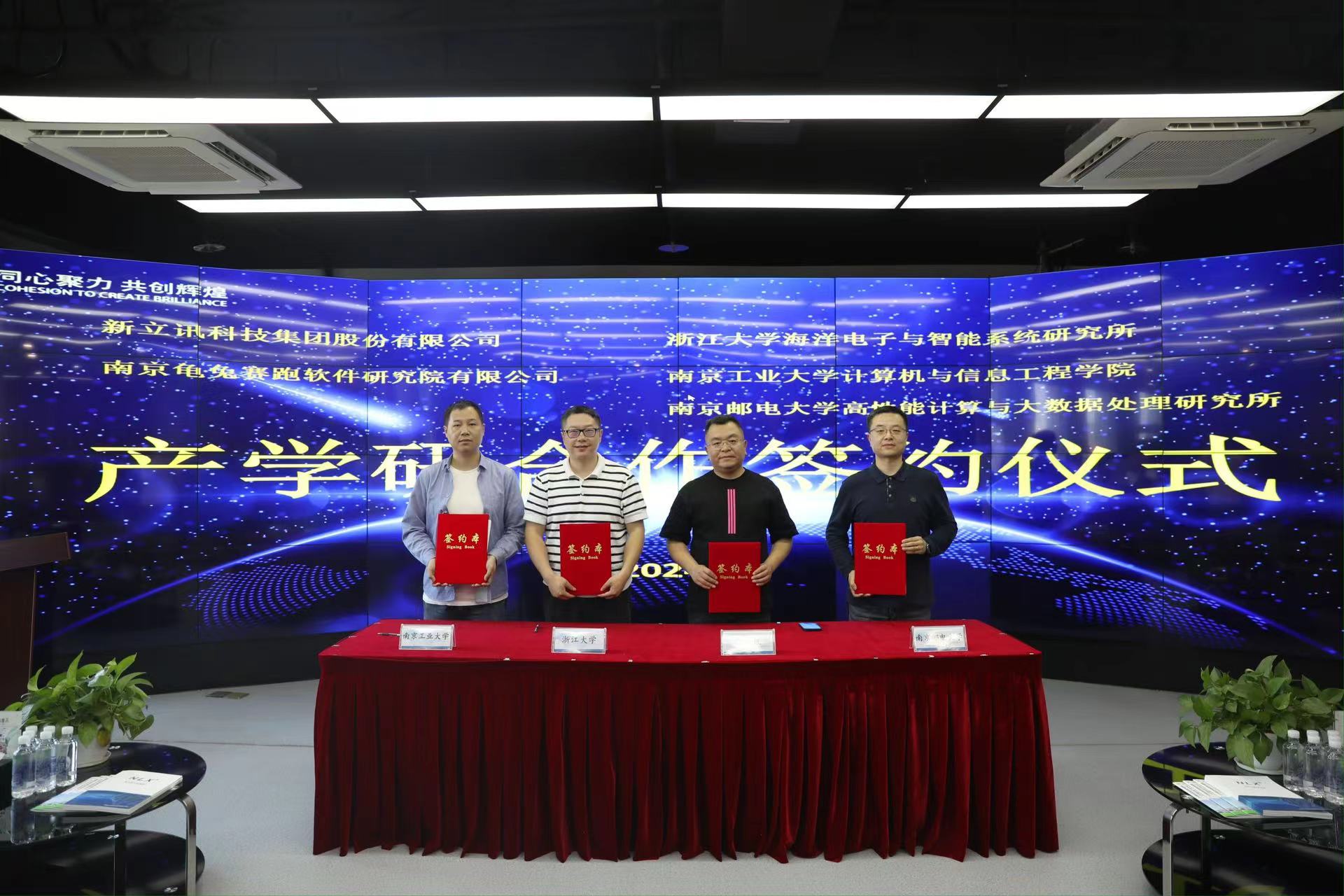 2024年5月7日,新立訊科技集團與浙江大學海洋學院、南京郵電大學高性能研究所、南京工業大學計算機學院在新立訊總部舉行產學研合作簽約儀式。浙江大學張帆教授,南京郵電大學劉尚東教授,南京工業大學沈航副教授與新立訊科技集團董事長毛霖,副總經理李偉等出席并簽約。